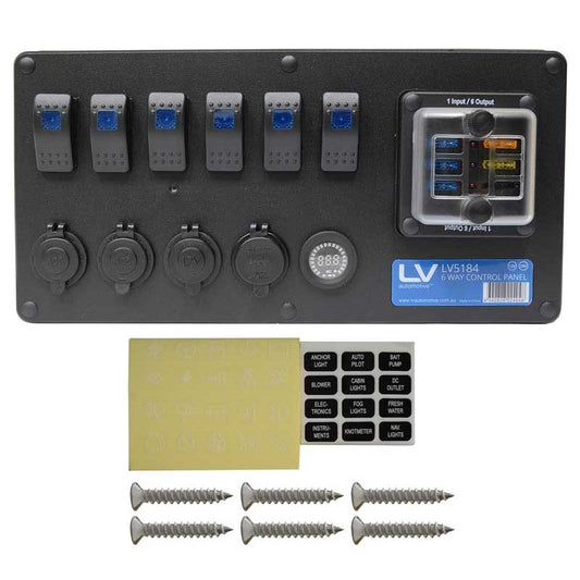 12/24V 6 WAY CONTROL PANEL 2 X DC,1X ENGEL O/P& VOLTMETER 2 X 50A ANDERSON TYPE SOCKETS Product Code :LV5184